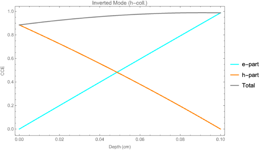 Charge collection efficiency (CCE) was calculated considering mobility-lifetime product of electrons (1*10^(-3)) and holes(1*10^(-4)).