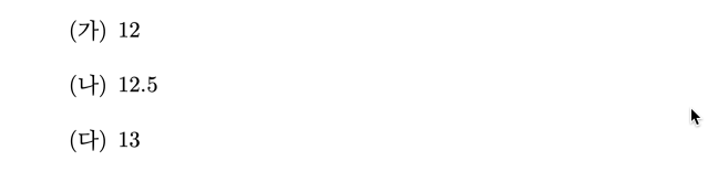 한글 문제집을 만들때, itemize를 이용해 보기를 만들때, 한글로 표현하고자 할때는 다음과 같이 표현한다.